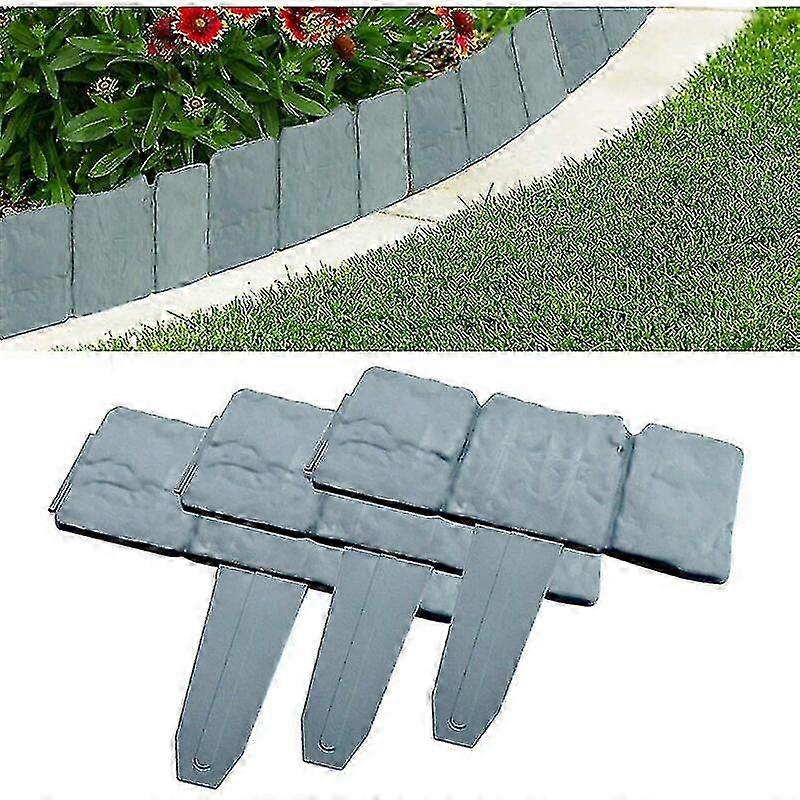 20 Pcs Garden Edging, Garden Lawn Edging Fence Border Gray Plastic Garden Lawn Edges Palisade Stone Effect Lawn Fenceedging For Garden Lawn Edition