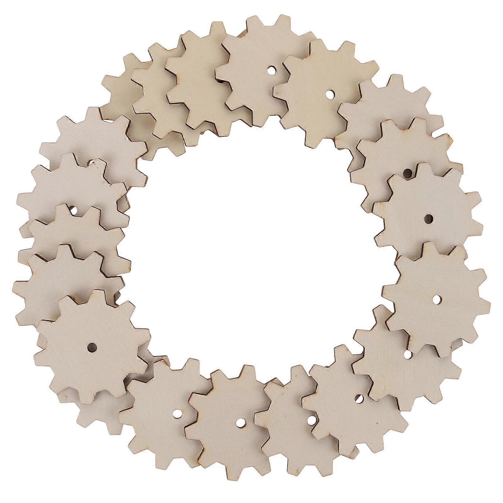 20 Pcs Unfinished Wood Gear Cutouts for DIY Painting Crafts Home Decor Beige Wood Slices
