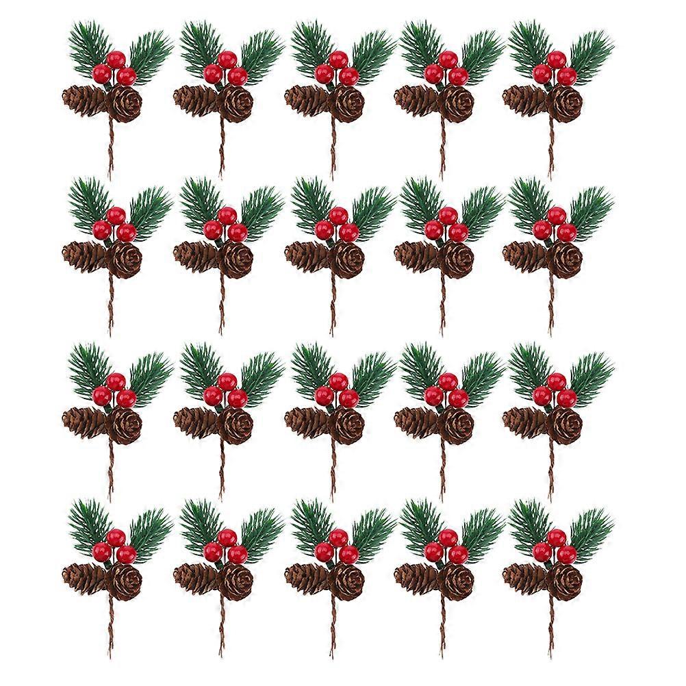 20 Pcs Nativity Decor Christmas Fake Tree Branches Pine Cones Crafts Pine Needles Picks Berry Pine Cones