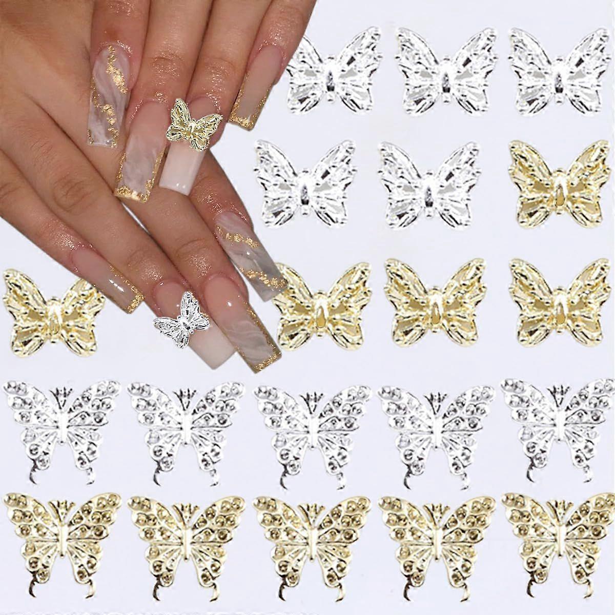 20Pcs Butterfly Nail Charms 3D Crystal Butterfly Nail Art Charms Gold Sliver