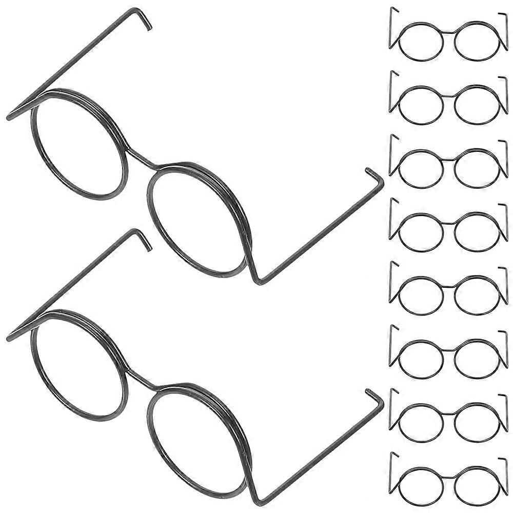 20pcs Mini Round Frame Doll Glasses Lightweight Metal Eyeglasses Without Lenses for Doll House Accessories Role Playing Black
