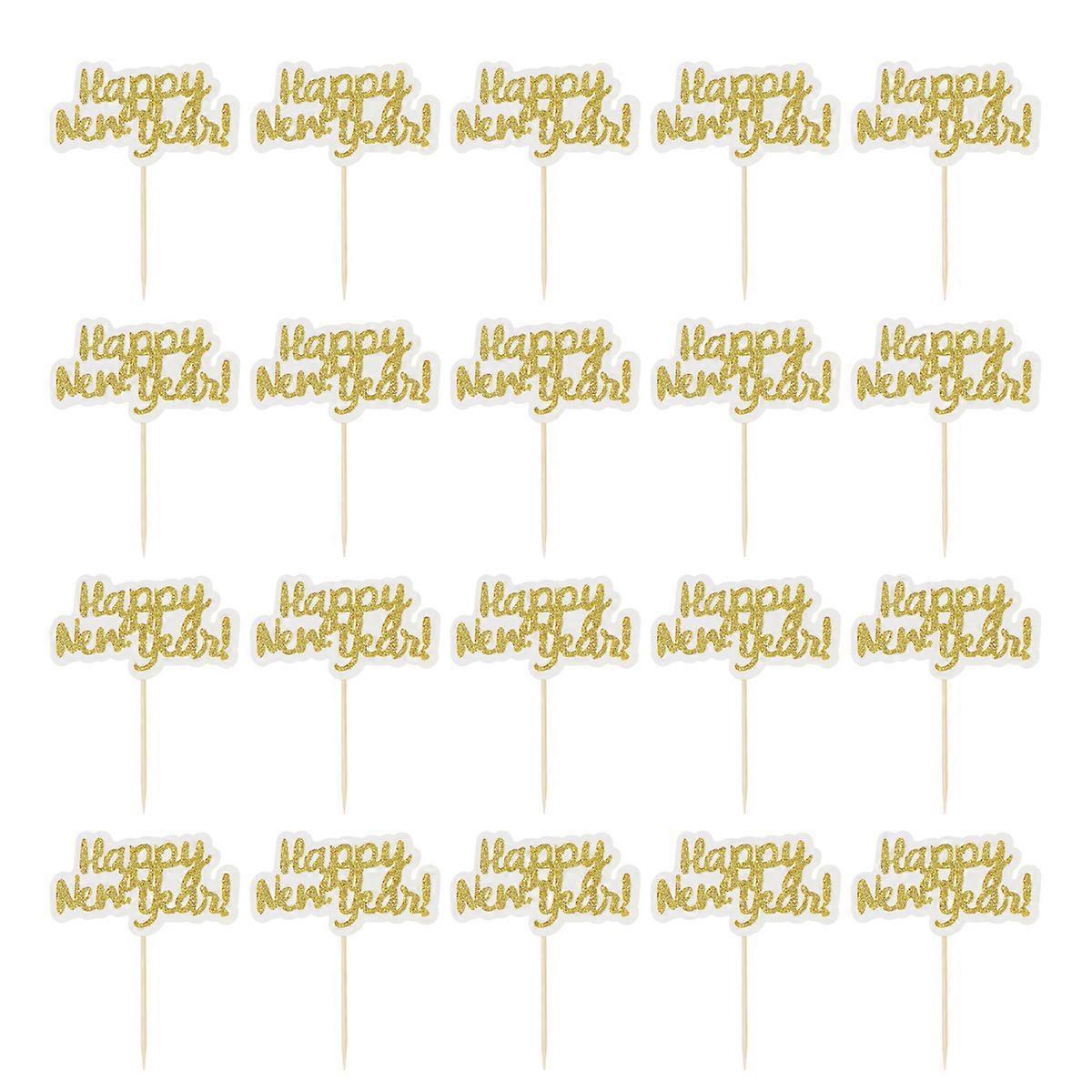 20Pcs HAPPY NEW YEARCake Pick Glitter Cupcake Topper Dessert Cake Decoration Party SuppliesGolden