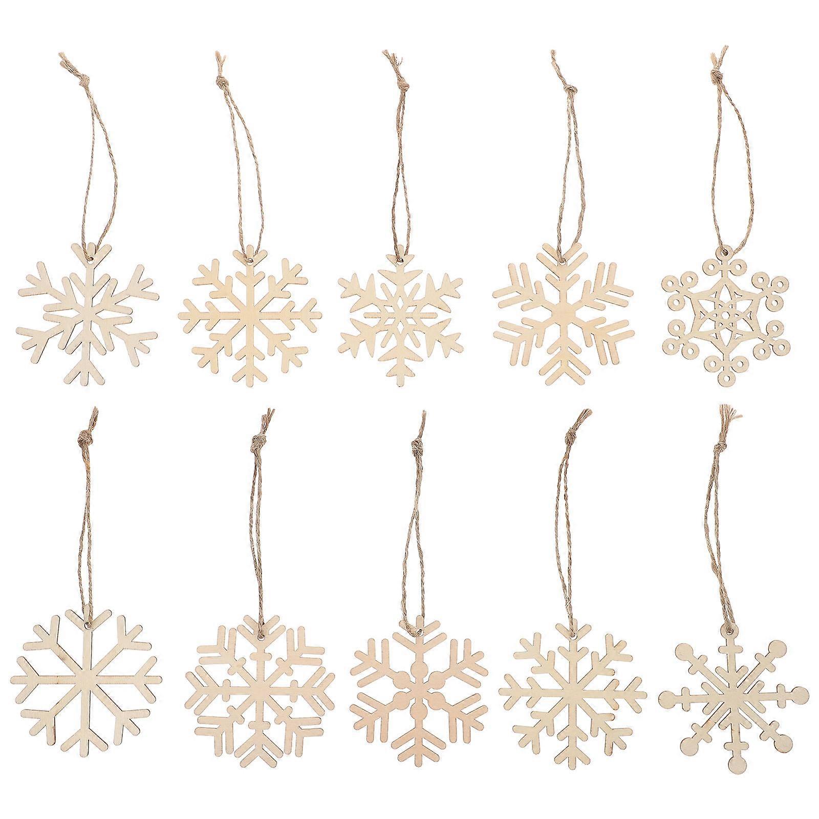 20pcs Wooden Snowflake Pendants Christmas Tree Decorations Party Hanging Ornaments Indoor Holiday Festival Reusable Festive Decor