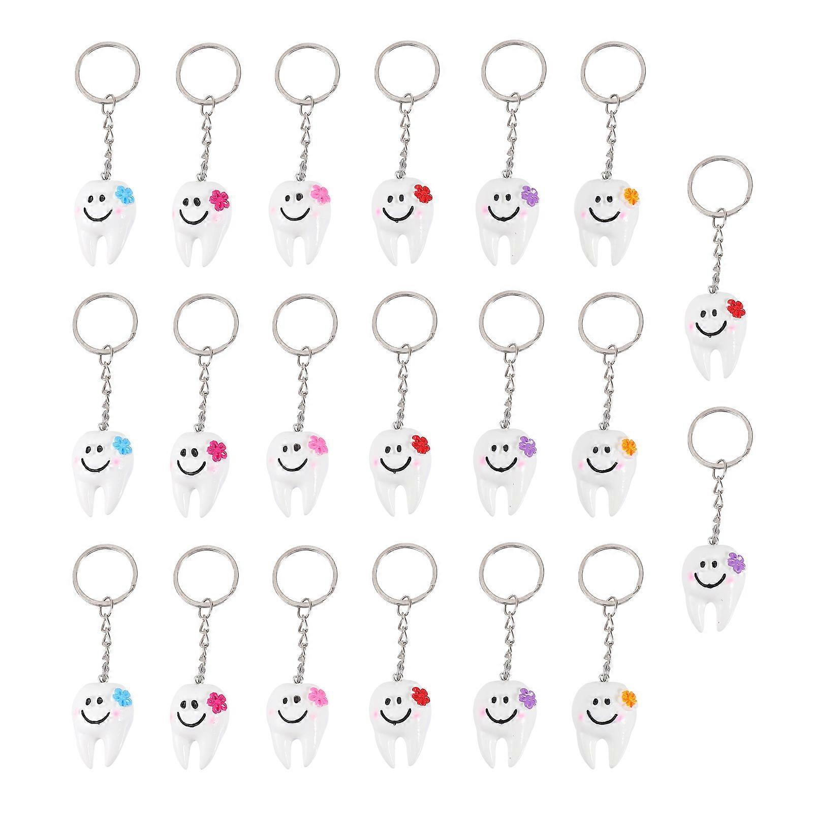 It looks like you're referring to a product listing or description for **"20pcs Tooth Shaped Keychain Creative Bag Hanging Pendants, Key Ring