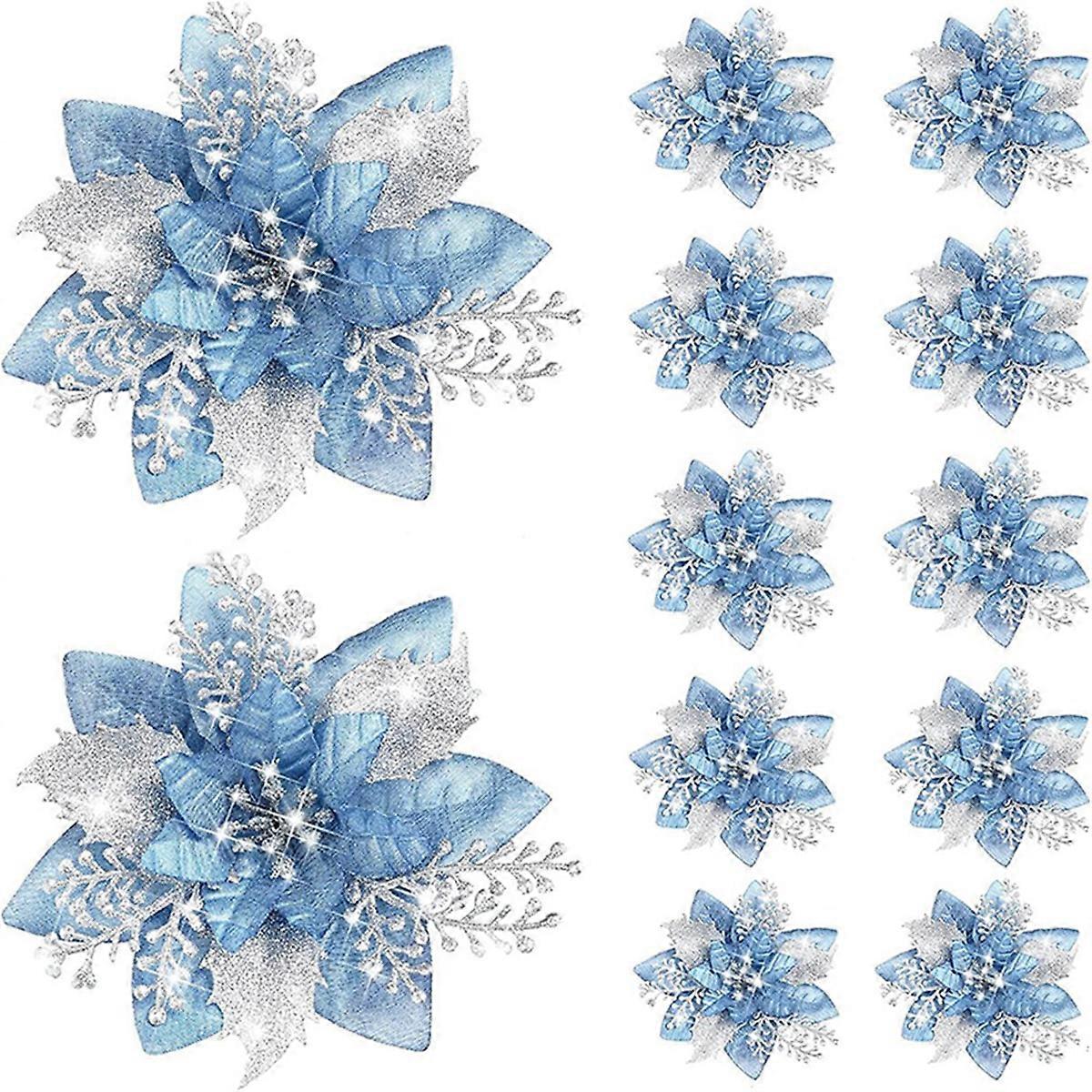 20PCS 14.5cm Glitter Artificial Christmas Flowers,B