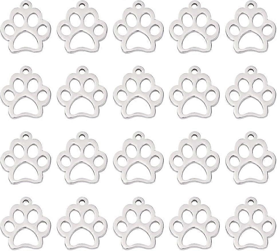 20Pcs 12.9mm Dog Paw Prints Charm Stainless Steel Pendants 1.5mm Small Hole Metal Hollow Charms for DIY Chain Jewelry Making Stainless Steel Color