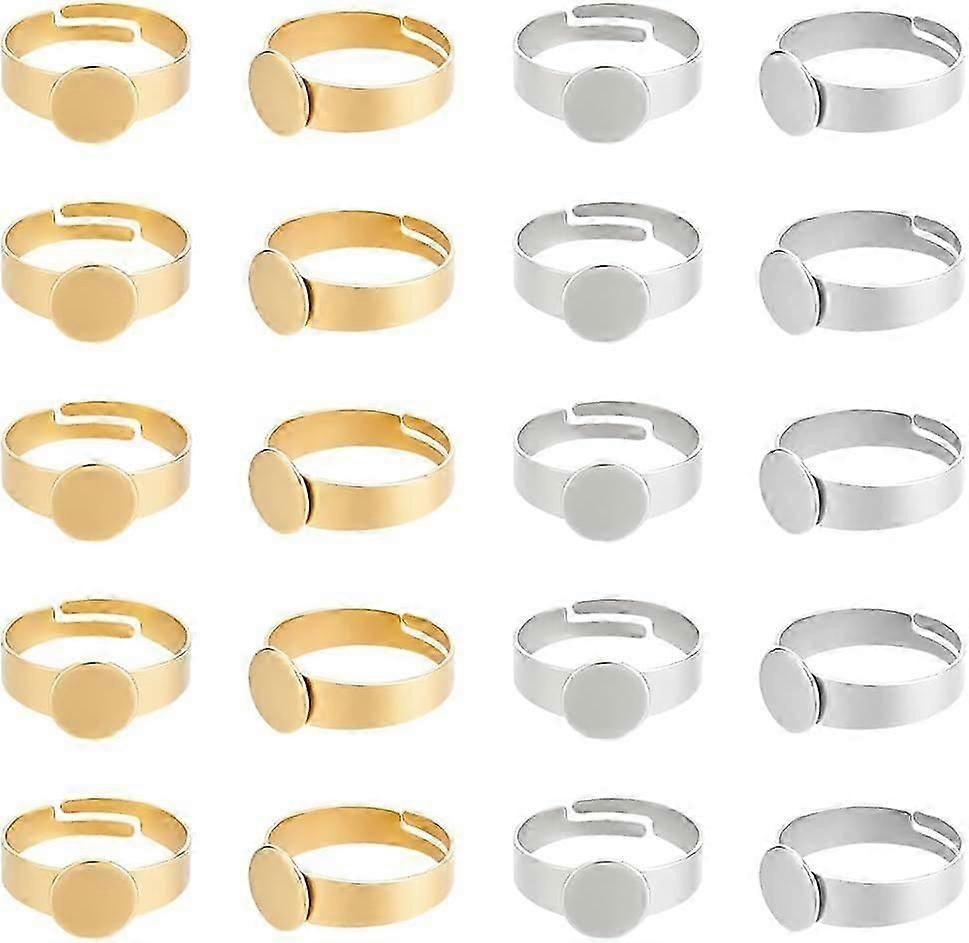 20 Pcs 2 Styles Stainless Steel Flat Round Pad Ring Base Findings Adjustable Blank Rings Finger Ring Components Bezel Tray 8mm for DIY Ring Jewelry Ma