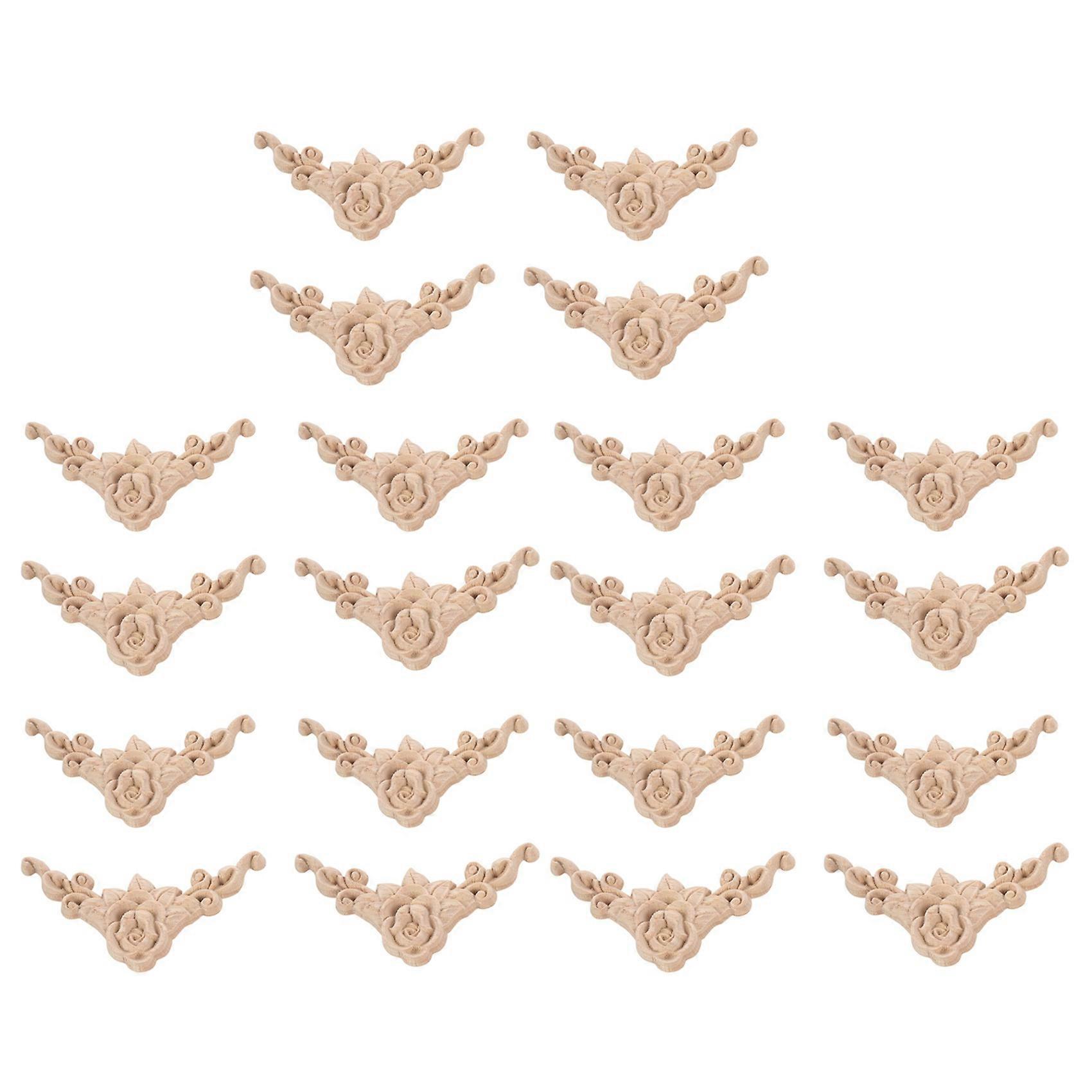 20Pcs 8 x 8cm Wood Carved Corner Onlay Applique Door Cabinet Rose Unpainted European Style