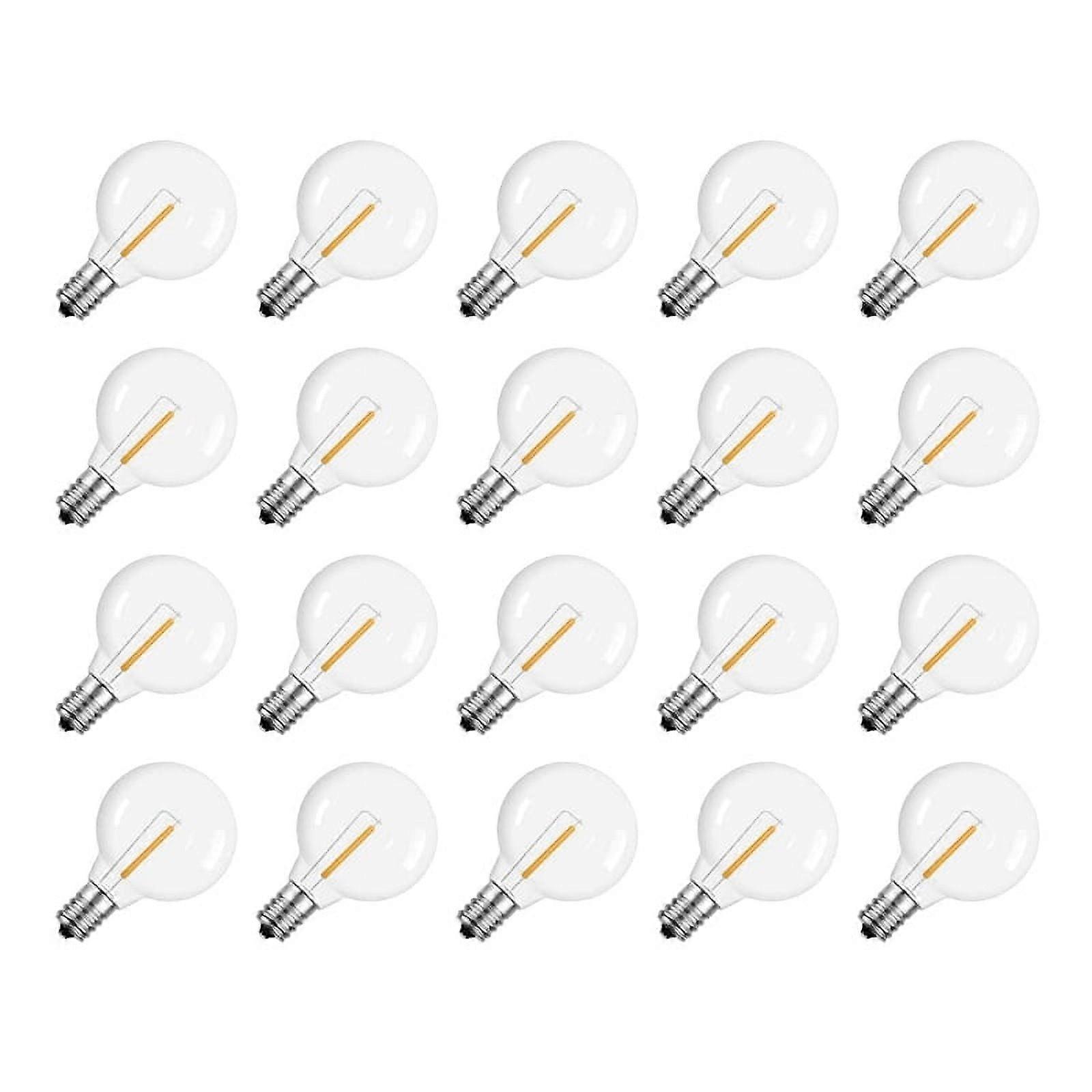 20 Pcs G40 LED Replacement Light Bulbs E12 Screw Base Shatterproof LED Globe Bulbs for Solar String Lights Warm