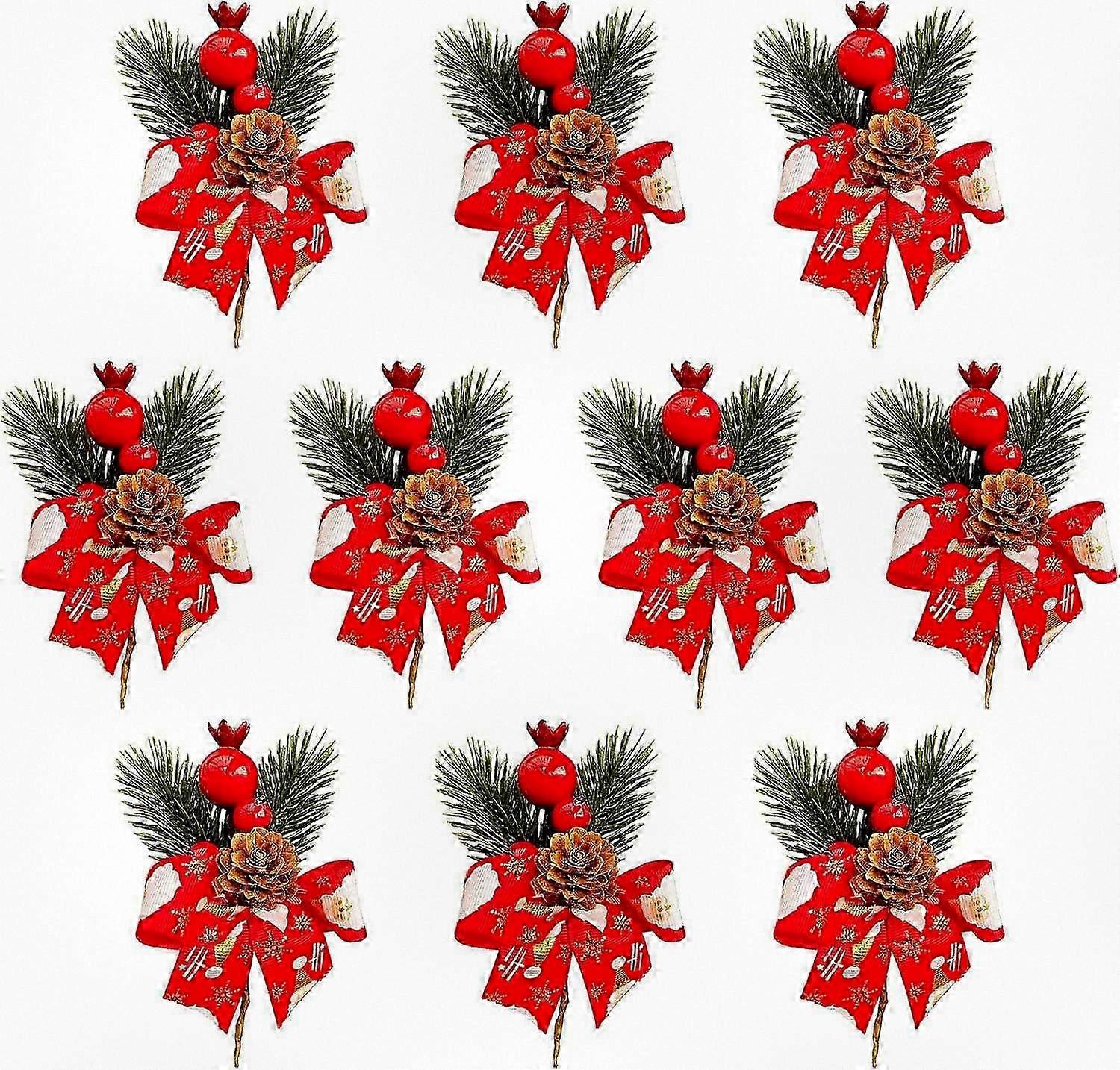 Set of 20 Artificial Pine Branches with Red Cones and Bow for Holiday Tree Decor