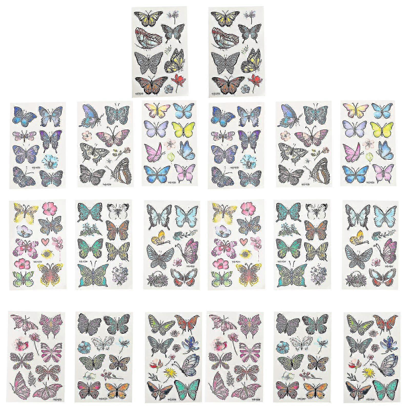 20 Sheets Butterflies Temporary Tattoos Body Fake Tattoos For Women Girls Kids