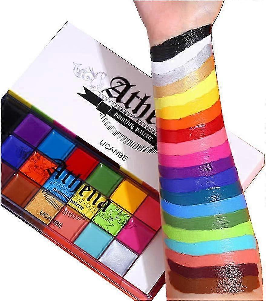 20 flash colors Tattoo Face Body Paint is suitable for everyone. Creating many different looks, meets the needs of different occasions. Adopting natural plant pigment extraction, which is safe and assured, n Does not irritate the skin. Friendly materials are safe for children and popular adults. Suitable for yourself, your friends, your children and professional makeup artists. It is a professional face painting. oil based, NOT oil based water based and it is easy to clean. to carry. Cleans easily with olive oil or professional waterproof makeup remover. 20 colors in total, colors can be easily shaded together to achieve a wide variety of colors. of effects, very practical to use. use. Idea to create crazy looks! Such as campfire party, campfire party, fire party fun theme, carnivals, prom, fancy dress, festival performances, party, Halloween and other occasions. HOW TO USE: 1 . Wipe your face with a moisturizing wipe or tissue. 2. Choose a clean, appropriate brush. 3. Stir the paint with a brush or sponge (without water or alcohol), you can use a single color or mix different colors to get the desired color. 4. Use a large brush or sponge to give you excellent coverage and a glossy finish; use a fine brush for fine lines and details, or use your fingers directly. 5. Wait a few seconds for the first color to dry before applying the next one. 6. Use stencils if you are unsure about painting with a brush. show of your hand or if you are short of time. HOW TO DELETE: 1. Using waterproof makeup remover/olive oil on face/brushes. 2. Waiting from 5 to 10 seconds. 3. Wipe with paper towels/cotton pads/sponge first. 4. Wash with facial cleanser. 5. Machine wash water. 6. If it's not clean enough, start again.