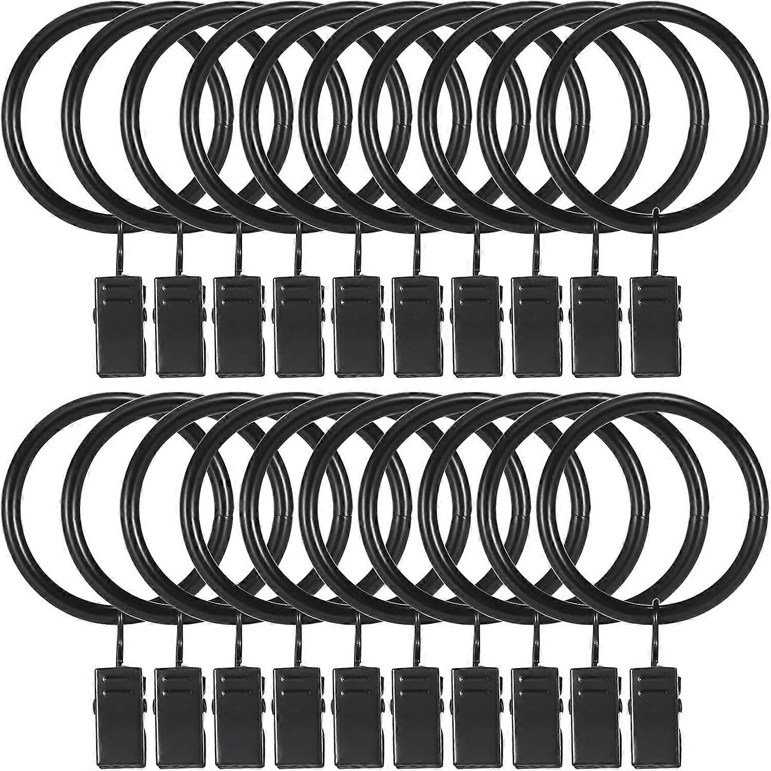 20 curtain hooks, 1.5 inch curtain rings, rustproof curtain rings with clips, solid metal curtain clips with rings, decorative vintage curtain hooks f
