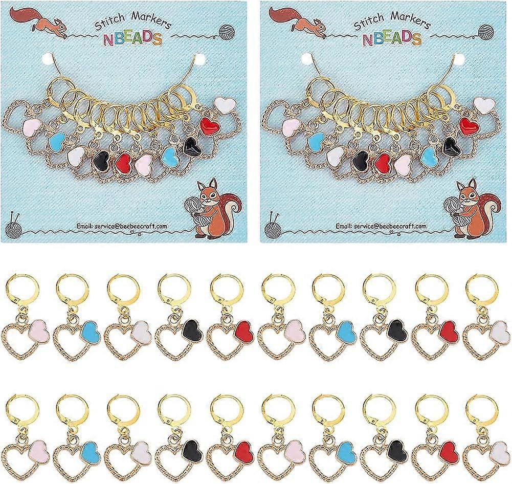 20 Pcs Heart Stitch Markers Alloy Enamel Crochet Stitch Marker Charms Brass Clasp Locking Stitch Marker for Knitting Weaving Sewing Jewelry Making