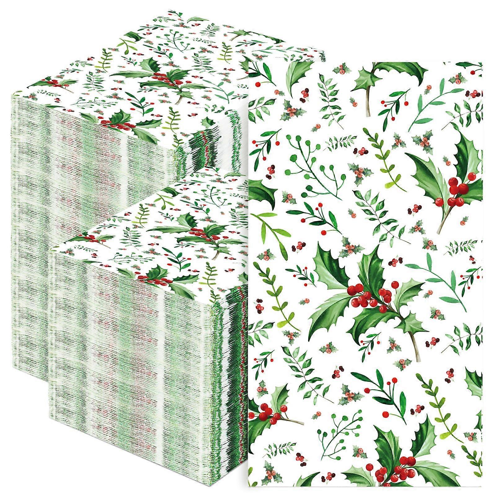 200 Pcs Christmas Holly Berry Design Napkins