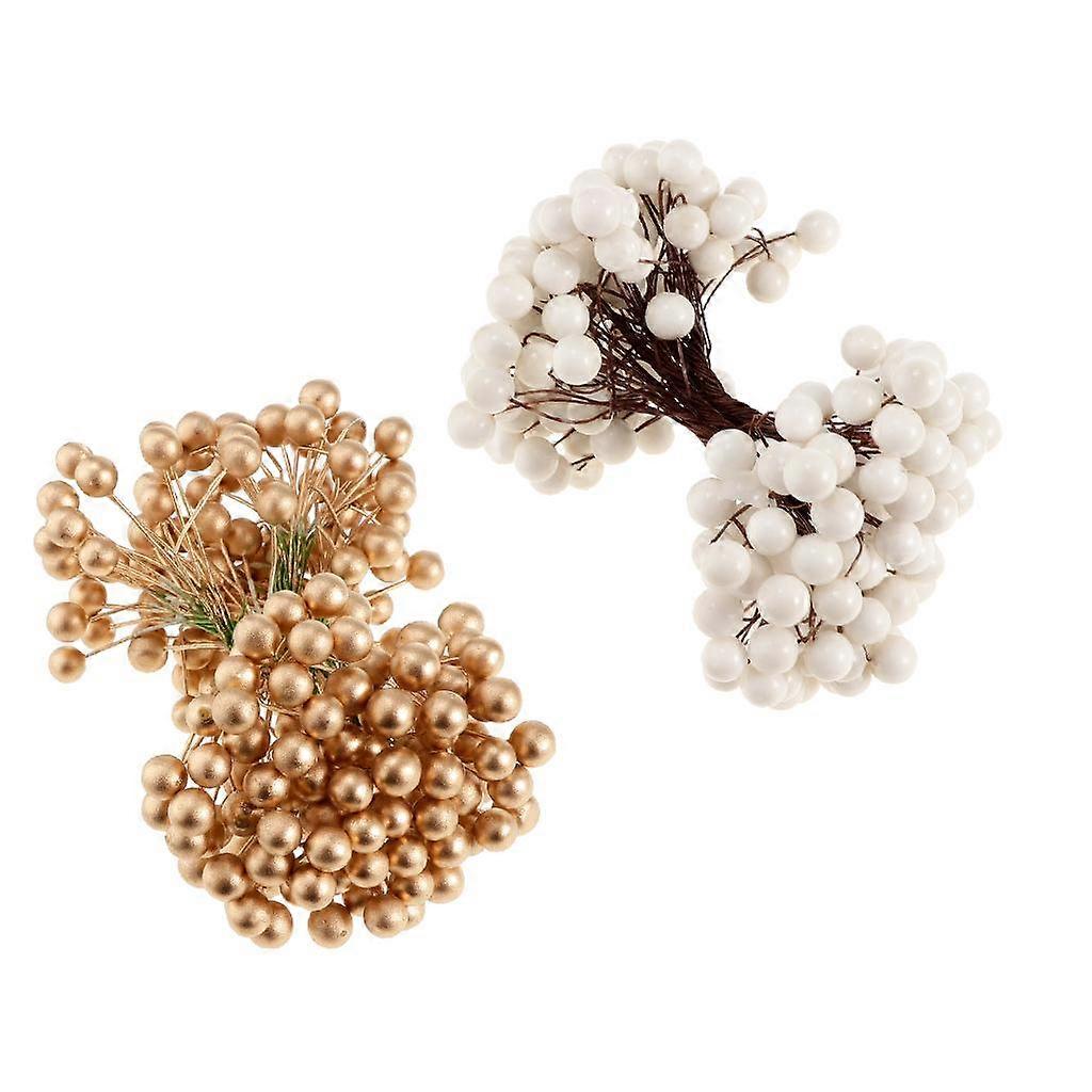 200Pcs Artificial Fruit Berries Blueberry Xmas Wedding Bouquet Golden+ White