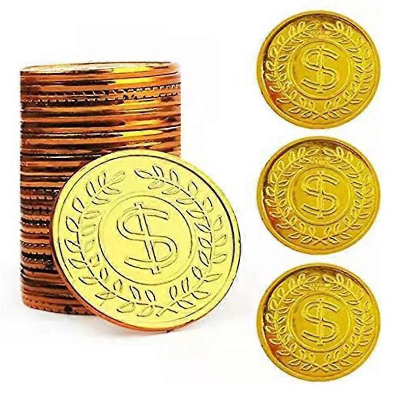 200pcs Pirate Golden Coins: Plastic Treasure Coins Kid Pretend Play Toy Tokens For Halloween Party Favor Supplies Hunt Adventure Game Classroom Reward