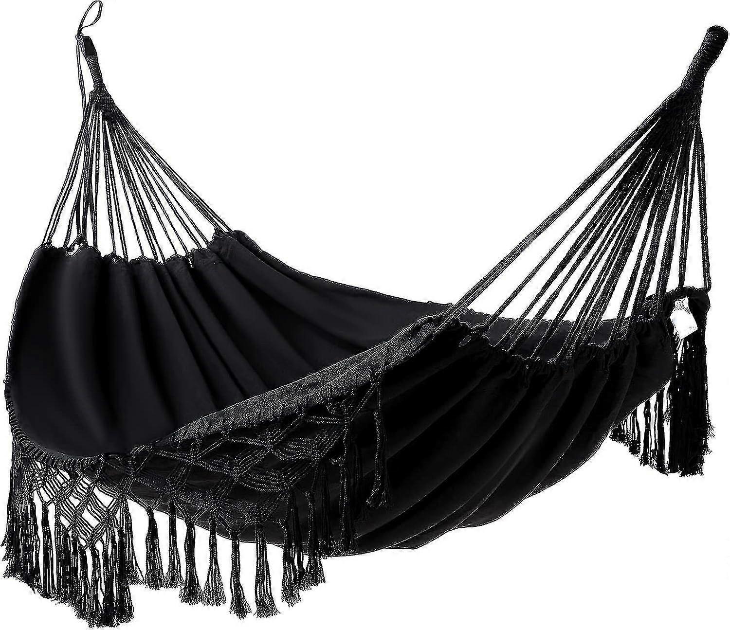 200*150cm Black Outdoor Hammock Double Cotton Brazilian Garden Hammock Suitable For 2 Adults Ideale Per Patio, Portico, Viaggi, Campeggio, Giardino