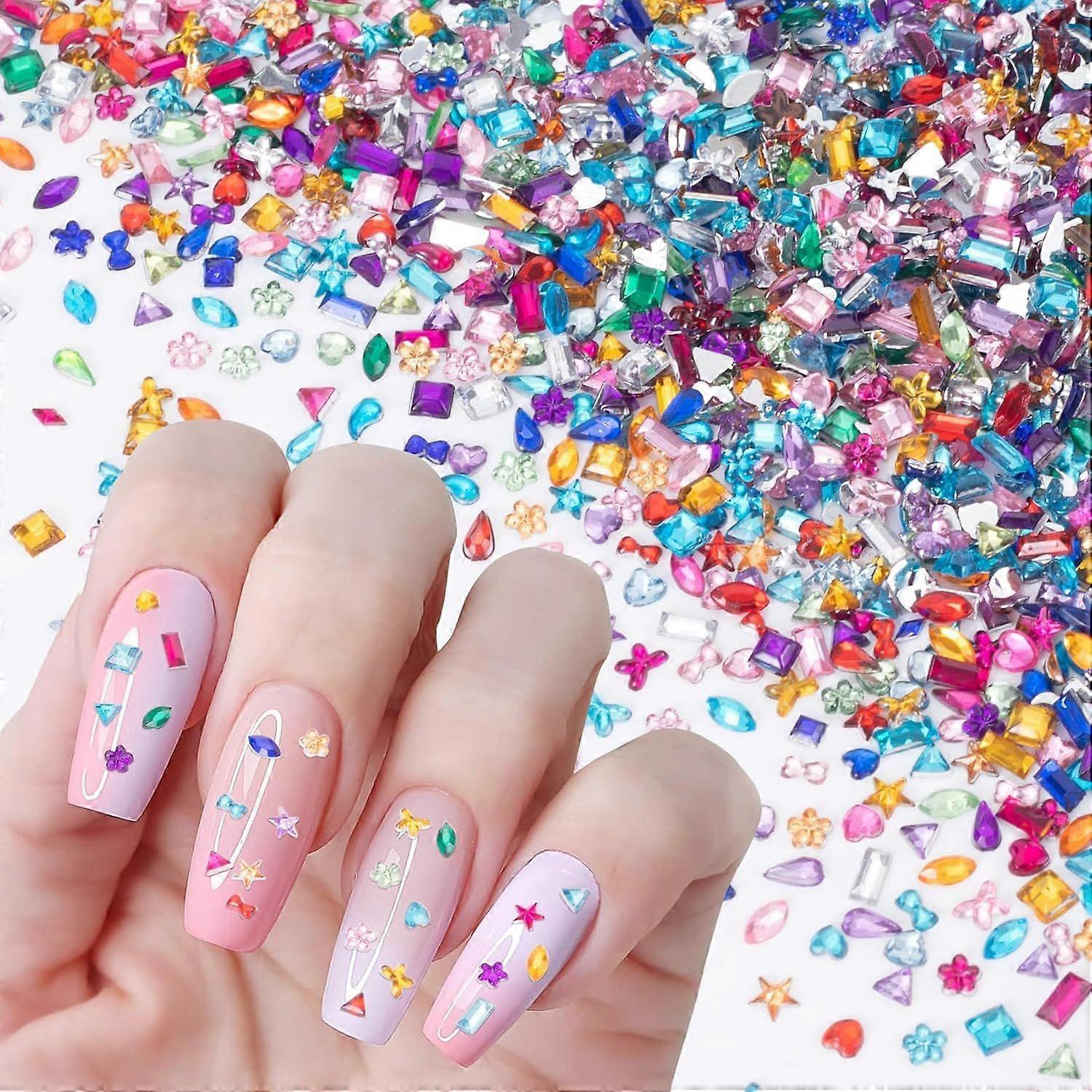 2000PCS Colorful Mini Rhinestones, Mixed Shape Crystal Nail Charms, Small 3D Flat Nail Gem