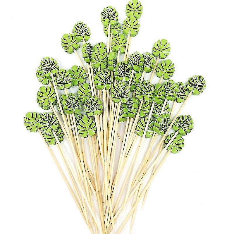 200pc Bamboo Pick Buffet Tropical Leaves Cupcake Fruit Compatible Withk