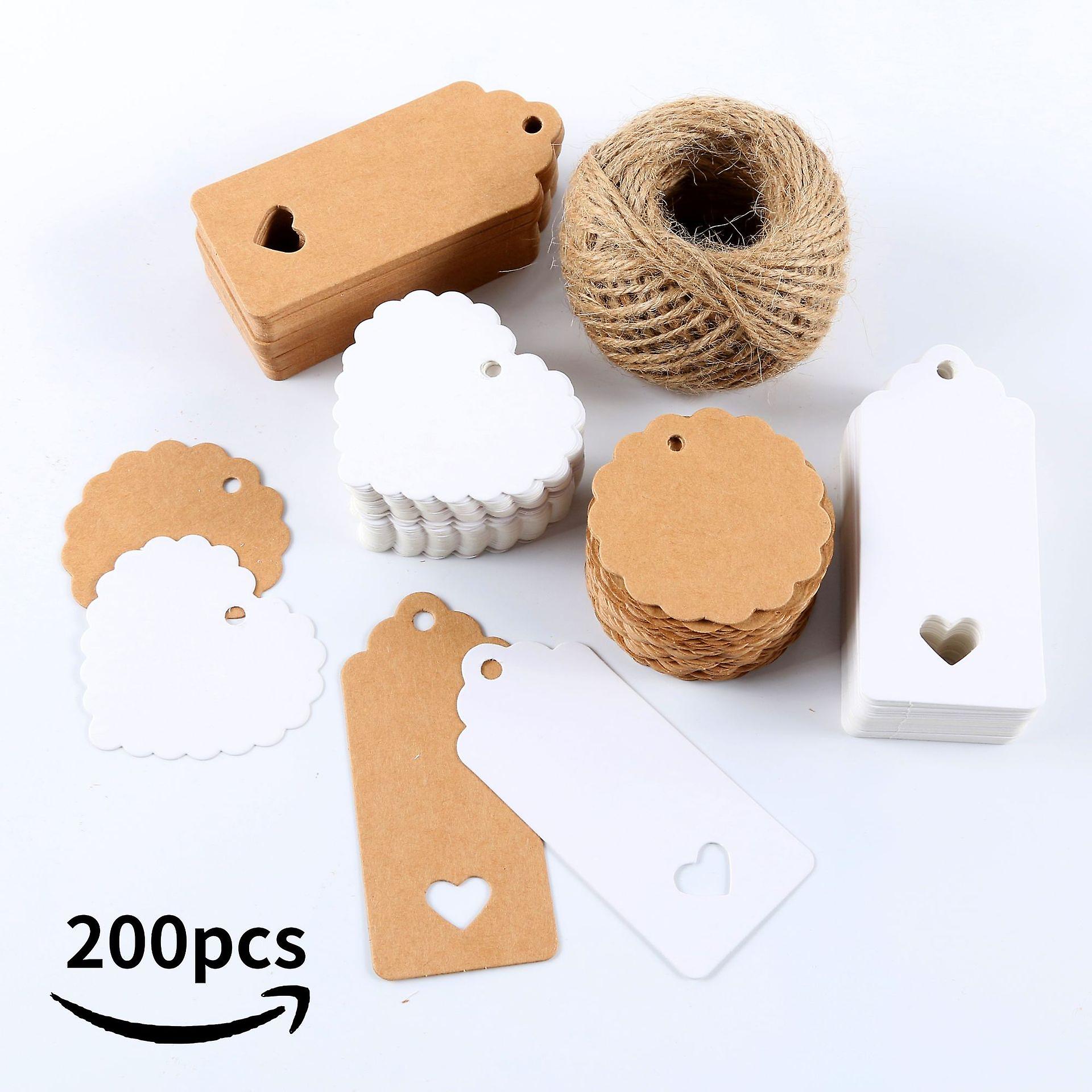 High Quality Craftsmanship: 200 PCS gift tags are made of sturdy "kraft" paper, come with durable natural jute twine. Hole punched for convenient use. Various shape options: Rectangular with the hollow heart (white and brown) Perfect DIY projects: blank spaces on both sides can let your rich imagination run wild. You can write, paint, use stickers, tape, ink pads. Multiple ways to use: It can be used as Christmas gift tags, scrapbook embellishments, cupcake toppers, price tags, clothing tags, student word cards, wish tree tags or other craft projects For various occasions: These vintage labels could be the perfect decoration for birthday party, wedding, autumn and Thanksgiving Day, Valentine's Day, Christmas, etc. Note: the data are all Manual measurements, please allow 1 - 3cm error, due to the difference in light and display, there will be some color difference, depending on the physical object received.