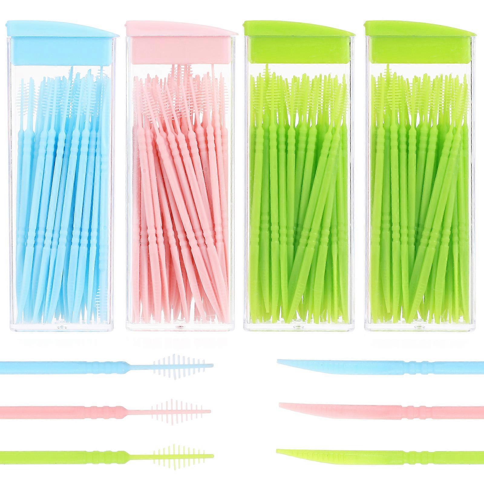 200pcs Double-ended Dental Plastic Toothpicks Brush Teeth Sticks Dental Oral Care Tooth Sticks(Random Color)