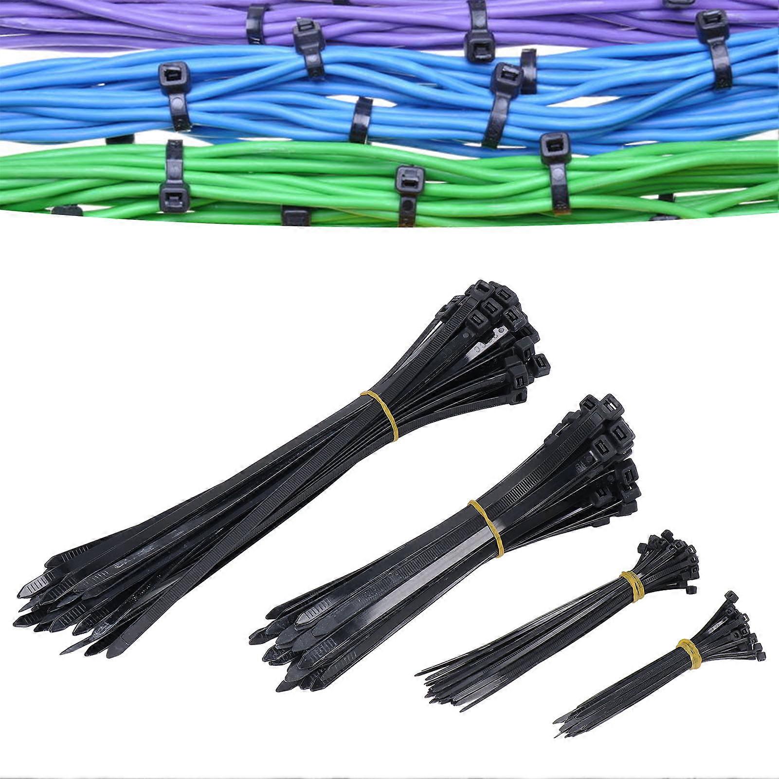 200Pcs Heavy Duty Cable Ties Assortment Zip 4 6 8 12in Assorted Sizes 18 120lb Tensile Strength Black