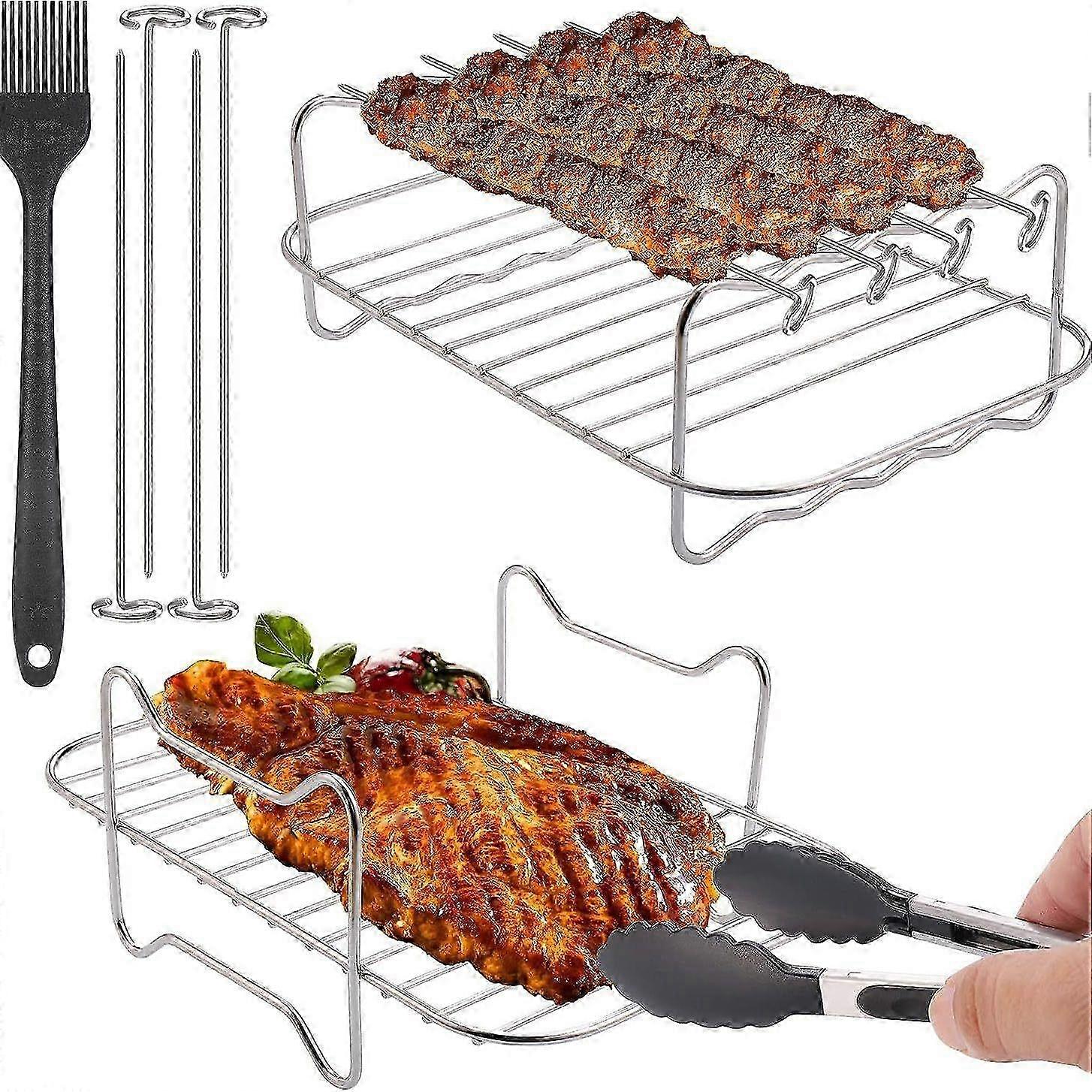 Double Layer Grill Rack Steamer in 201 Stainless Steel - Suitable for Air Fryers, Rectangular BBQ Rack Accessory