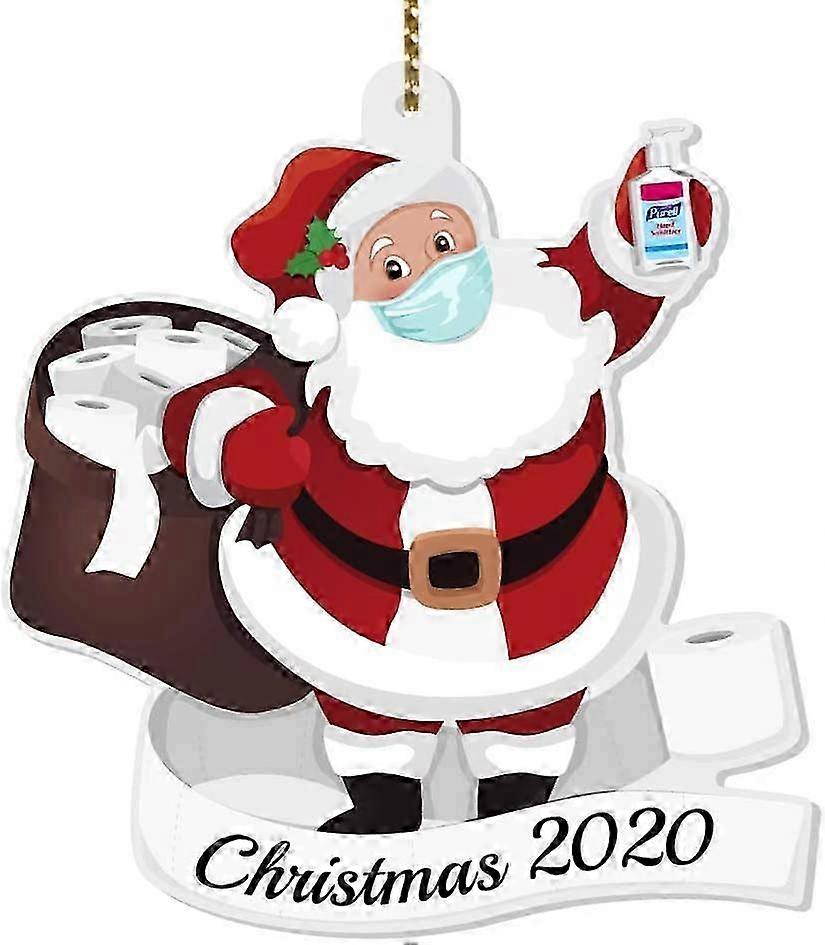 Christmas 2020 Stylish Ornament Set: Santa with Mask, Hand Sanitizer & Paper