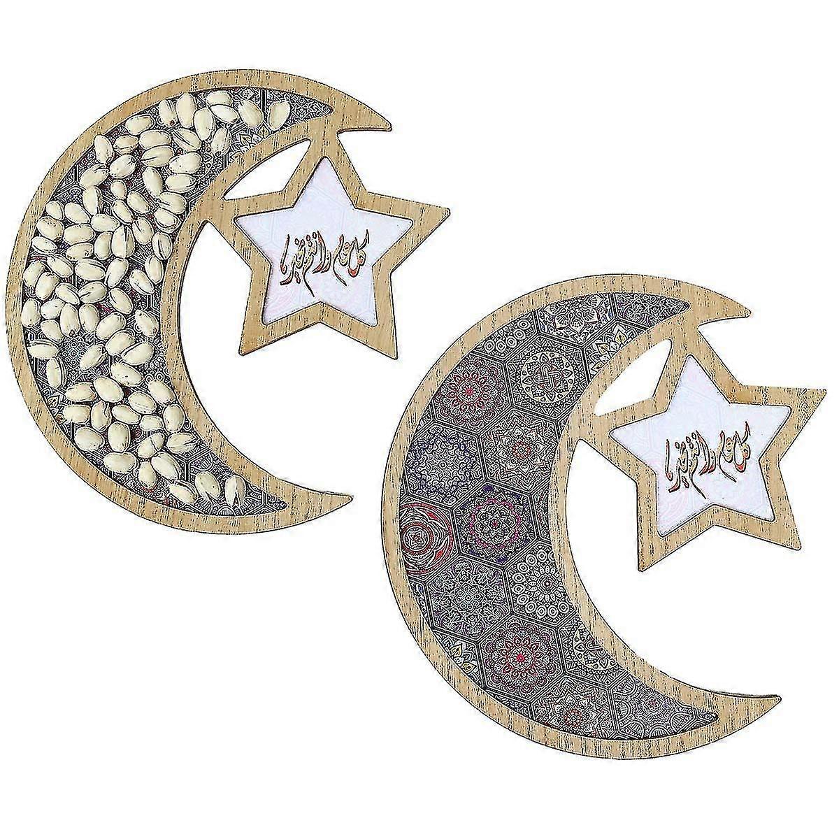 2022 Eid Wooden Dinner Plate Home Ramadan Food Serving Tray Moon Star Eid Ramadan Home Party Dessert Decor Islam Supplies