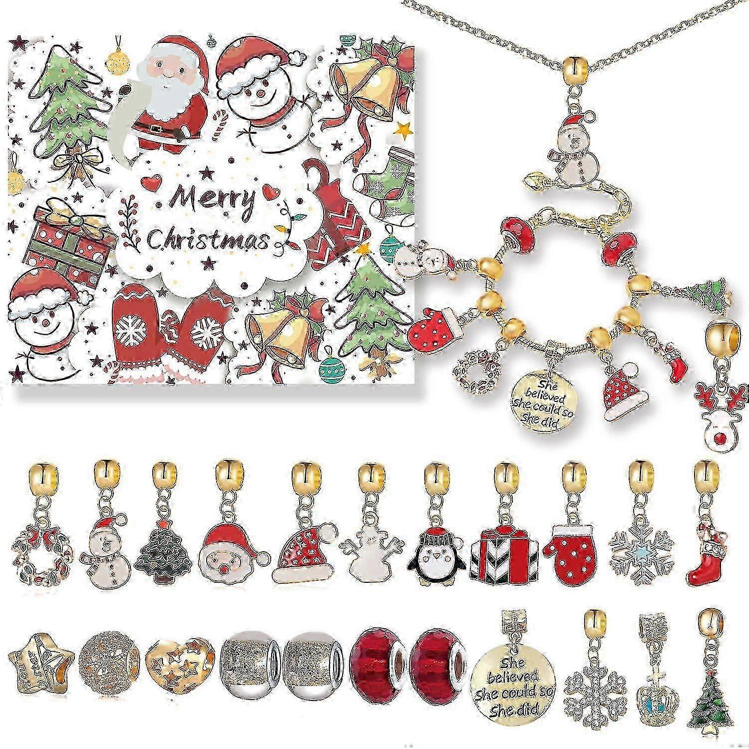 2022 Christmas 24 Days Countdown Advent Calendar Diy Bracelets Necklace Pendant Blind Box Kit