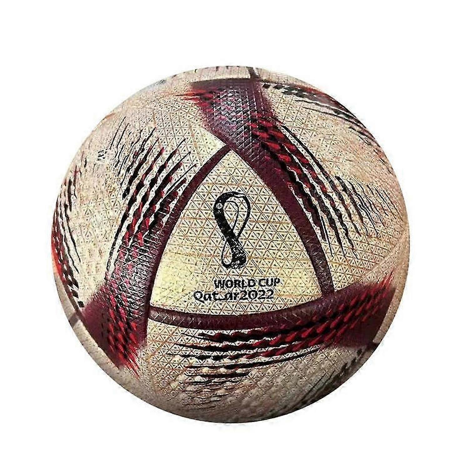 Good news for football enthusiasts! We present to you the official match ball from the 2022 Qatar World Cup Final. It is not only the heart of the game but also an excellent training partner for the passionate football field.<br> This football carries the glory and dreams of the Qatar World Cup as the official match ball of the final. Its design draws inspiration from Qatar's culture and traditions, featuring a unique pattern of golden metallic sheen, chestnut brown, deep burgundy, and red, reflecting the host nation's passion and vitality. Additionally, the ball incorporates elements of Qatar's traditional architecture and desert landscapes, with every detail showcasing the country's unique charm.<br> In terms of performance, it employs advanced technology inherited from the official match ball. The outer layer is made from high-tech synthetic materials, offering a soft yet resilient feel. This not only reduces friction between the ball and the foot, providing an unparalleled smoothness during ball control and passing, but also ensures excellent durability. Whether on artificial turf, natural grass, or rougher surfaces, it can withstand the rigours of high-intensity matches and training. The interior is equipped with a high-quality butyl rubber bladder, offering excellent air retention and maintaining pressure for extended periods.<br> Packaging contents:<br> 1 football<br> 1 needle<br> This football is shipped in an uninflated state. Upon opening the packaging, you may notice slight natural patterns (transportation indentations) on the ball's surface, which is a normal phenomenon and does not affect its performance. We recommend the following steps for your first use:<br> 1. Inflate to standard pressure<br> 2. Gently tap and roll the ball multiple times to help it take shape<br> 3. Leave it to rest for 96 hours or engage in more activities to restore its full shape.