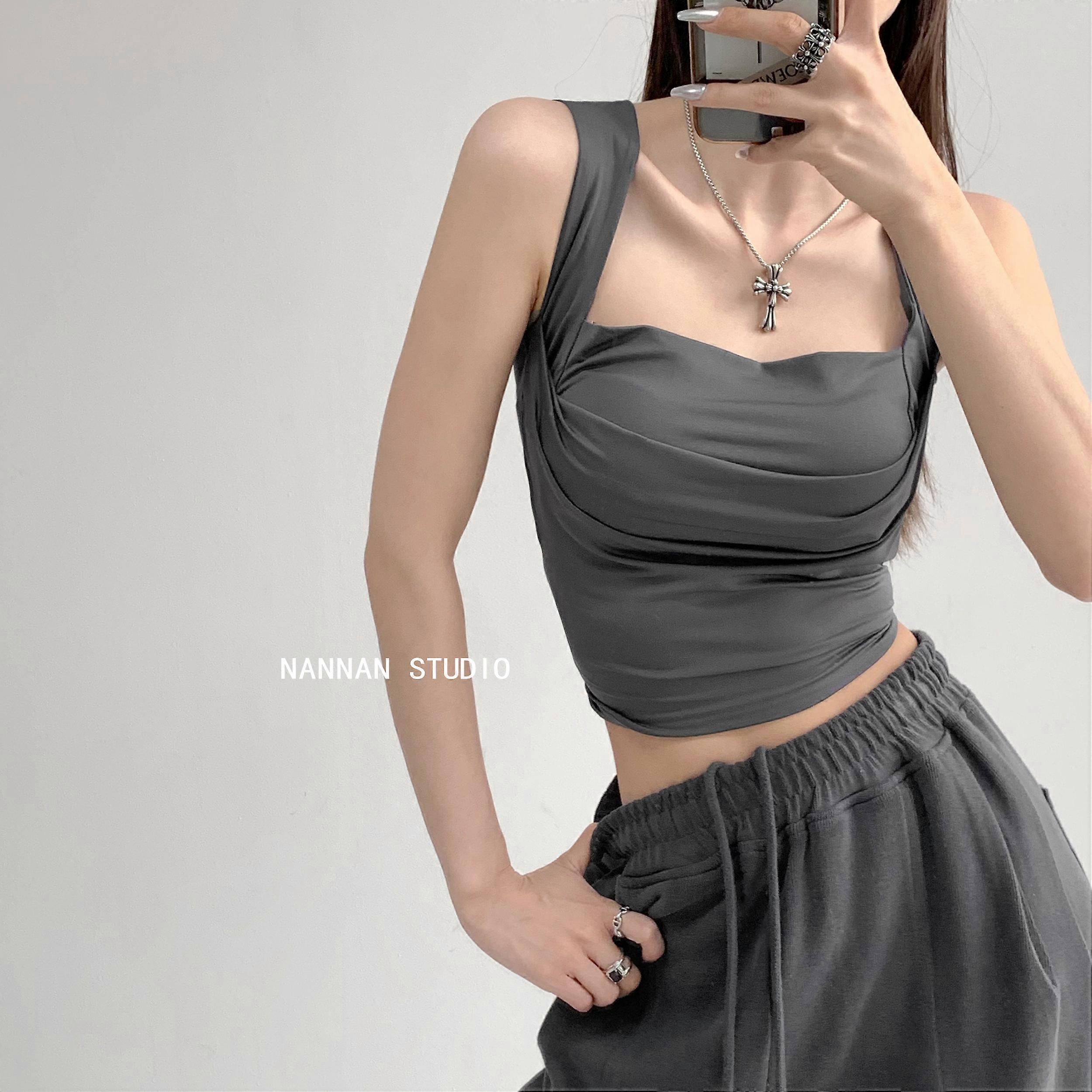 2022 Summer Sexy Square Collar Low-Cut Slimming Base Vest Women's Solid Color Short Sleeveless Tall Top Trendy