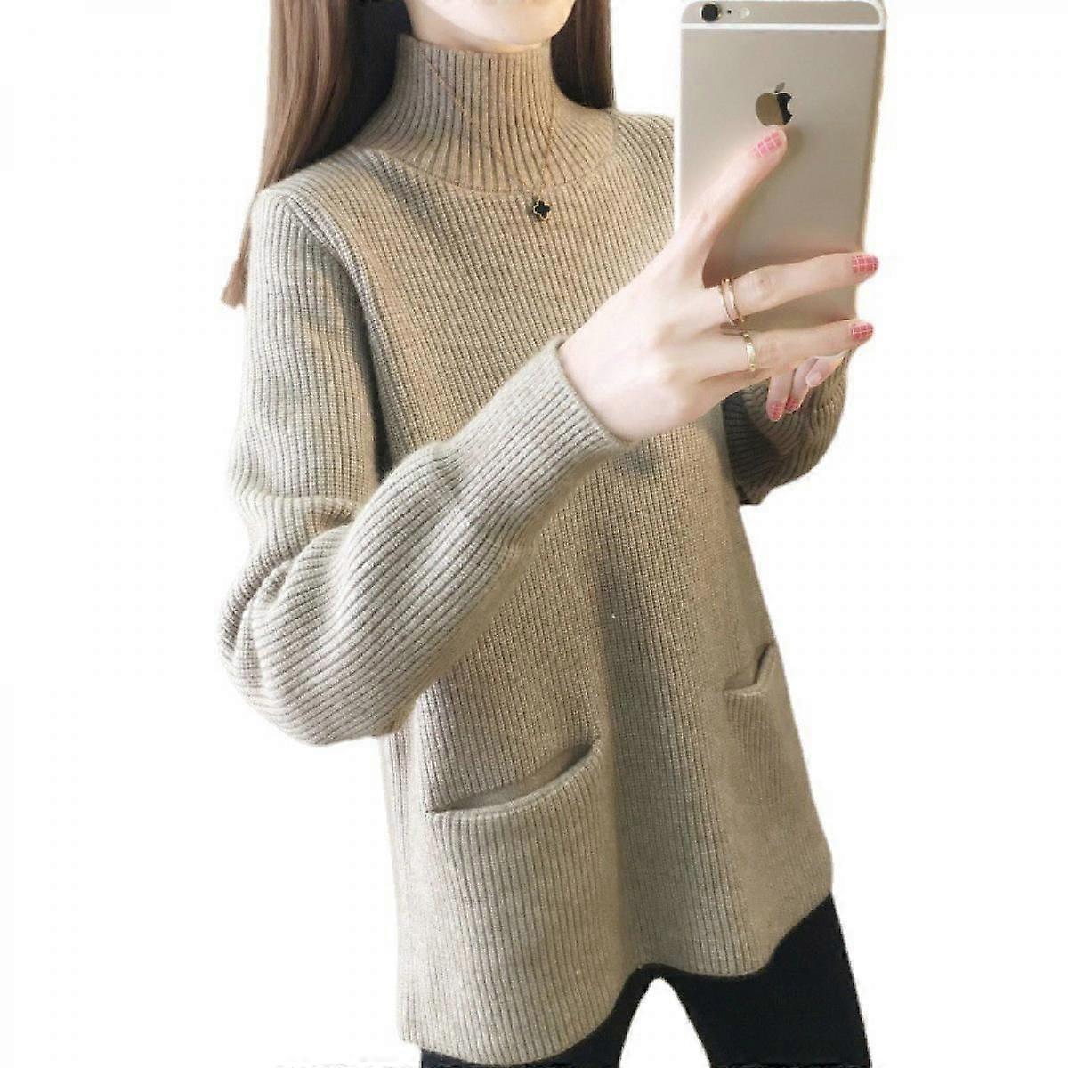 Women's Turtleneck Sweaters 2022 Fall Long Batwing Sleeve Tunic Pullover Sweater Knit Tops,Camel