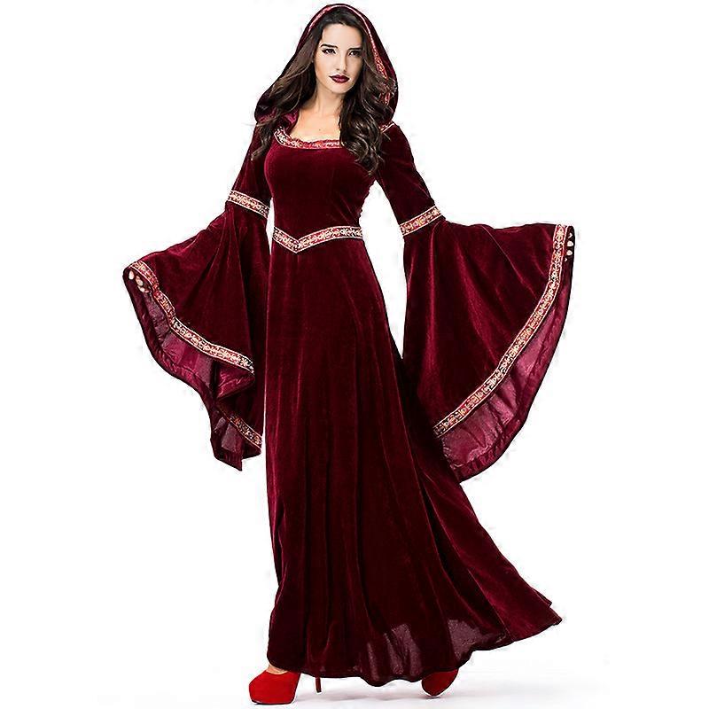 2023 Deluxe Women Medieval Cosplay Vampire Halloween Costumes Adult Gothic Hoodie Witch Long Party Dress