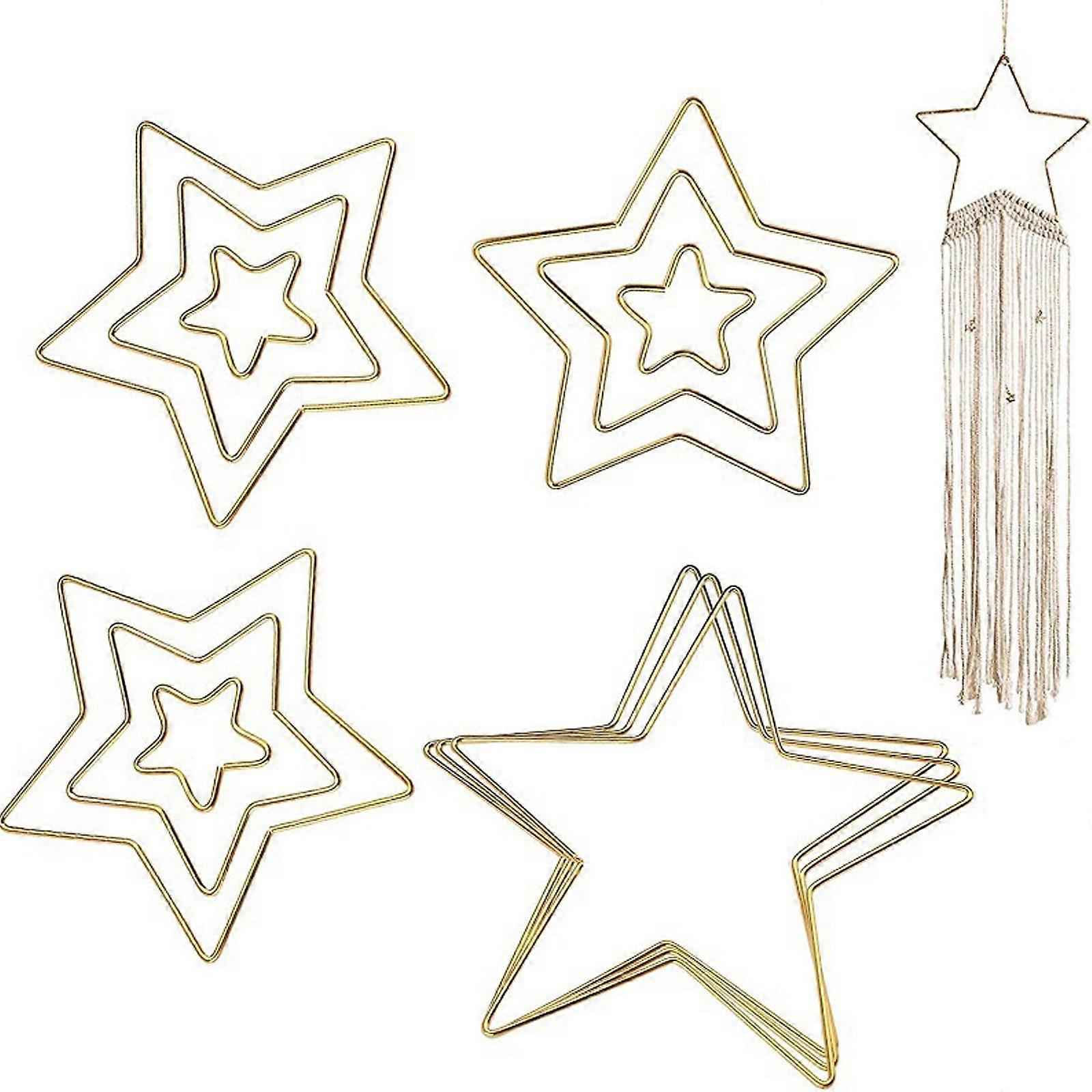 2023 New Hot DIY Star Wreath Frame for Handcrafts, Metal Wire Pentagram Hoops for Christmas New Year Wedding - Gold 30cm