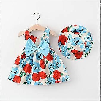 2023 New Summer Toddler Girl Clothes Set Baby Beach Dresses Cute Bow Plaid Sleeveless Cotton Newborn Princess Dress+sunhat fast
