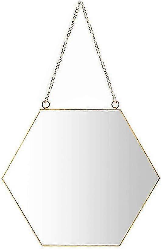 2023 - Hanging Mirror, Brass Hexagonal Frame Bathroom Mirror With Chain [small]