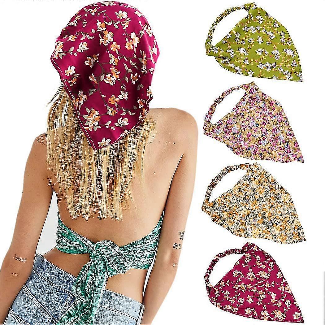 2023 - Floral Hair Bandanas 4pcs, Bandanas For Women Chiffon Hair Scarf Floral Headband With Clips