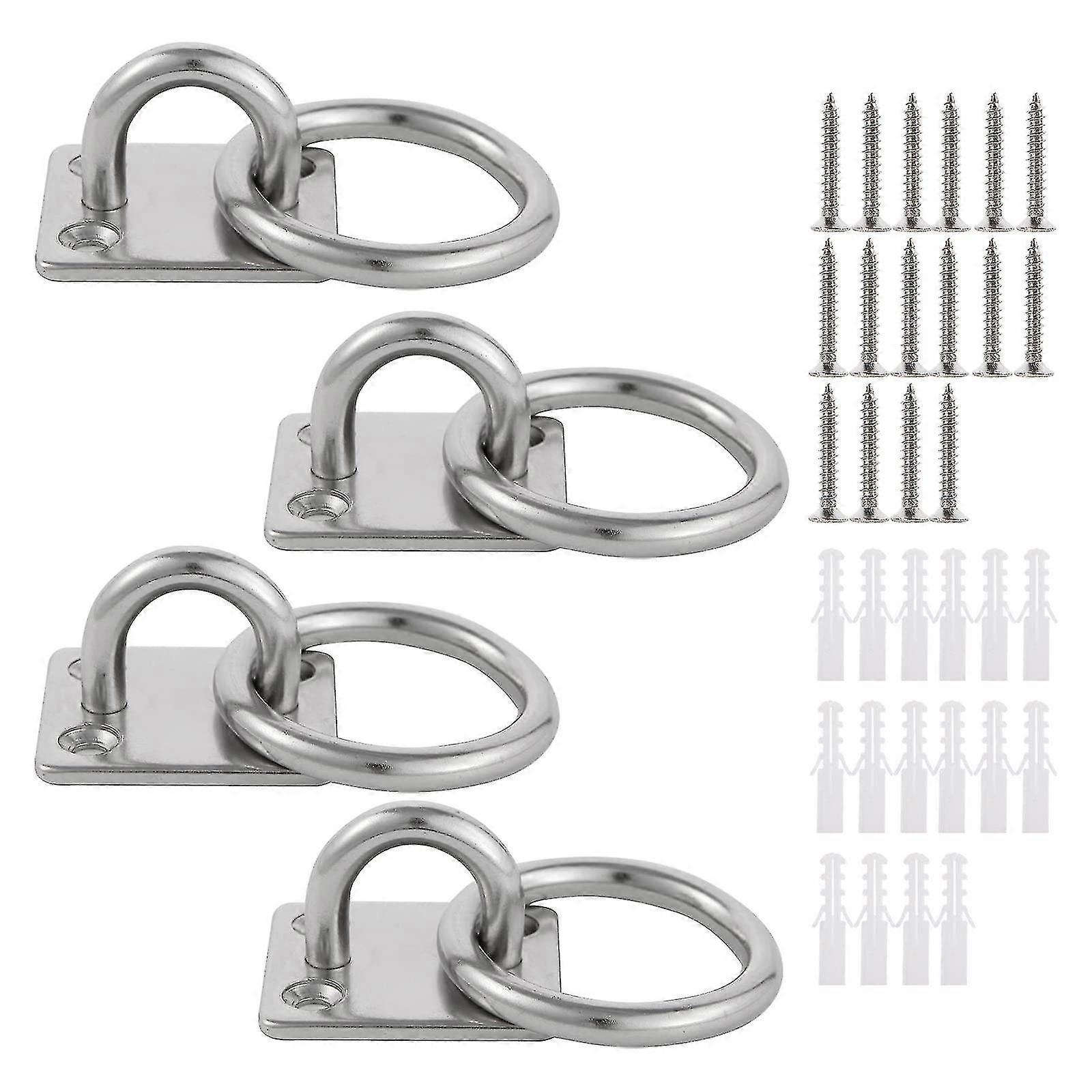 2023 - 4 PCS M6 Eyelet Plate with Ring 304 Stainless Steel Heavy Duty Ceiling Hook 70kg Capacity Wall Mount
