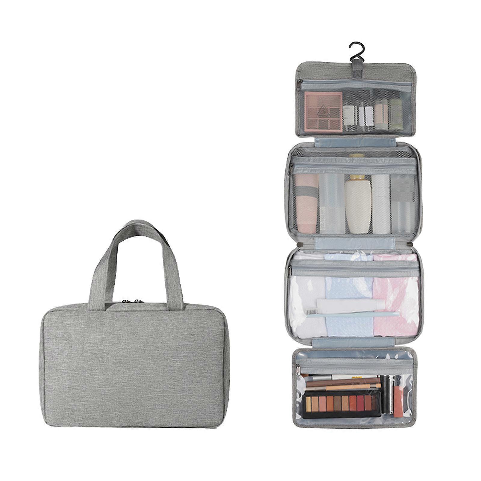 Features 1. High Quality: The makeup bag is waterproof and made of high-quality fabrics. Compact, portable, lightweight, well-wrapped, soft are the characteristics of our cosmetic bag. The soft fabric and lightweight design make it very portable, reducing the burden of luggage and making travel easier. 2. Large Capacity: Divided into 4 bags in total, the first bag can hold cosmetics such as lipstick. The second bag can hold skin care products. The third bag is for toiletries. The fourth bag can hold face masks, towels and toothbrushes. 3. Perfect Size: The folded size of this hanging toiletry bag is 27 x 18 x 8 cm/11 x 7 x 3 inch, and the unfolded size is 73 x 25 cm/29 x 10 inch. Can be carried alone or in a suitcase. It's a travel bag for women and for men. 4. Easy to Grab: Special U-shape zippers design, take out the toiletries or zip up the toiletry case quickly. Multiple pouches and elastic bands. No more unpacking or digging through one bag and laying your stuff out on the bathroom counter. Just hang the bag up, grab what you need and put it back in the bag. 5. Organizer Your Small Items: Nice organizer for toiletries. It is a toiletry bag for a trip, also a organizer for daily family using, and a Christmas gift for your friend. Specification Material: Polyester, PU adhesive waterproof layer Color: Black, Grey, Pink, Navy Size: Rolled: 27 x 18 x 8 cm/11 x 7 x 3 inch, Open: 73 x 25 cm/29 x 10 inch Weight: 280 g Package Include: 1 Toiletry Bag