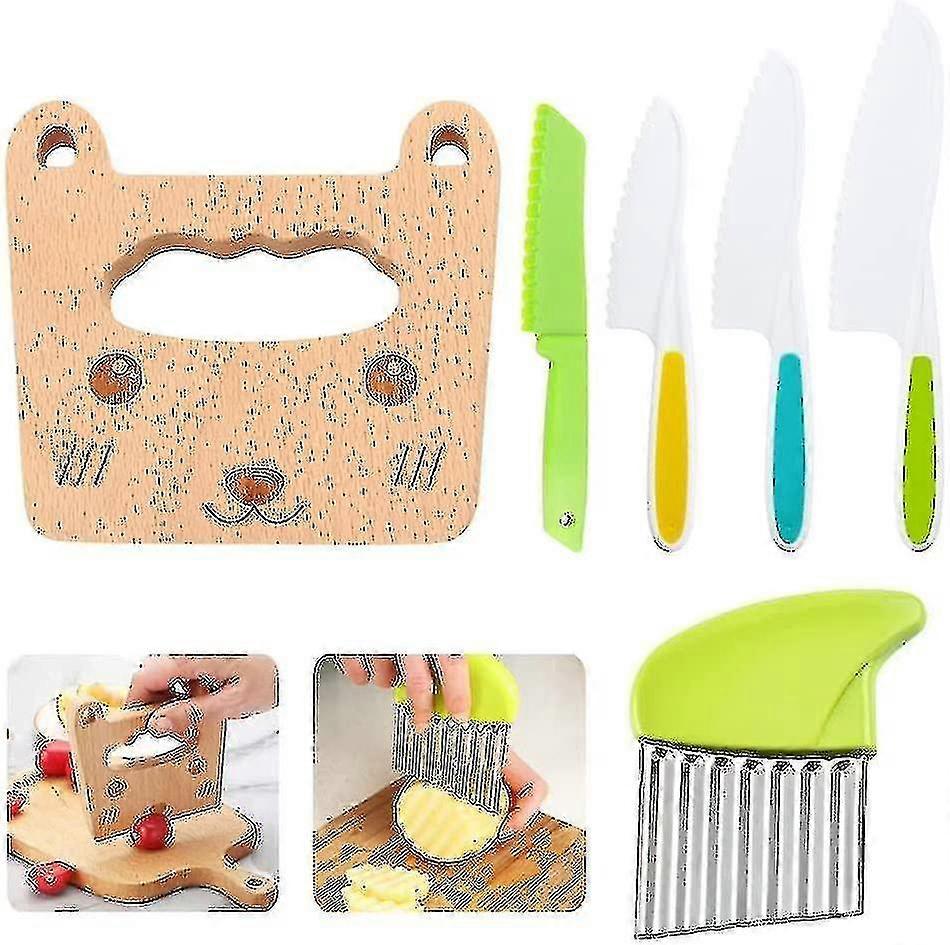 2023-wood Kids Kitchen Knife Toddler Knife Set Cooking Knives Vegetable Crinkle Cutter Cooking Utensils For Kids Kitchen Supplies-1