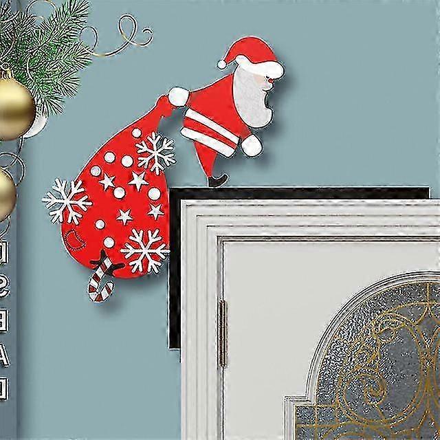 2023 Cartoon Door Frame Decoration Santa Claus Angel Elk Wooden Xmas Door Corner Ornament Home Merry Decor