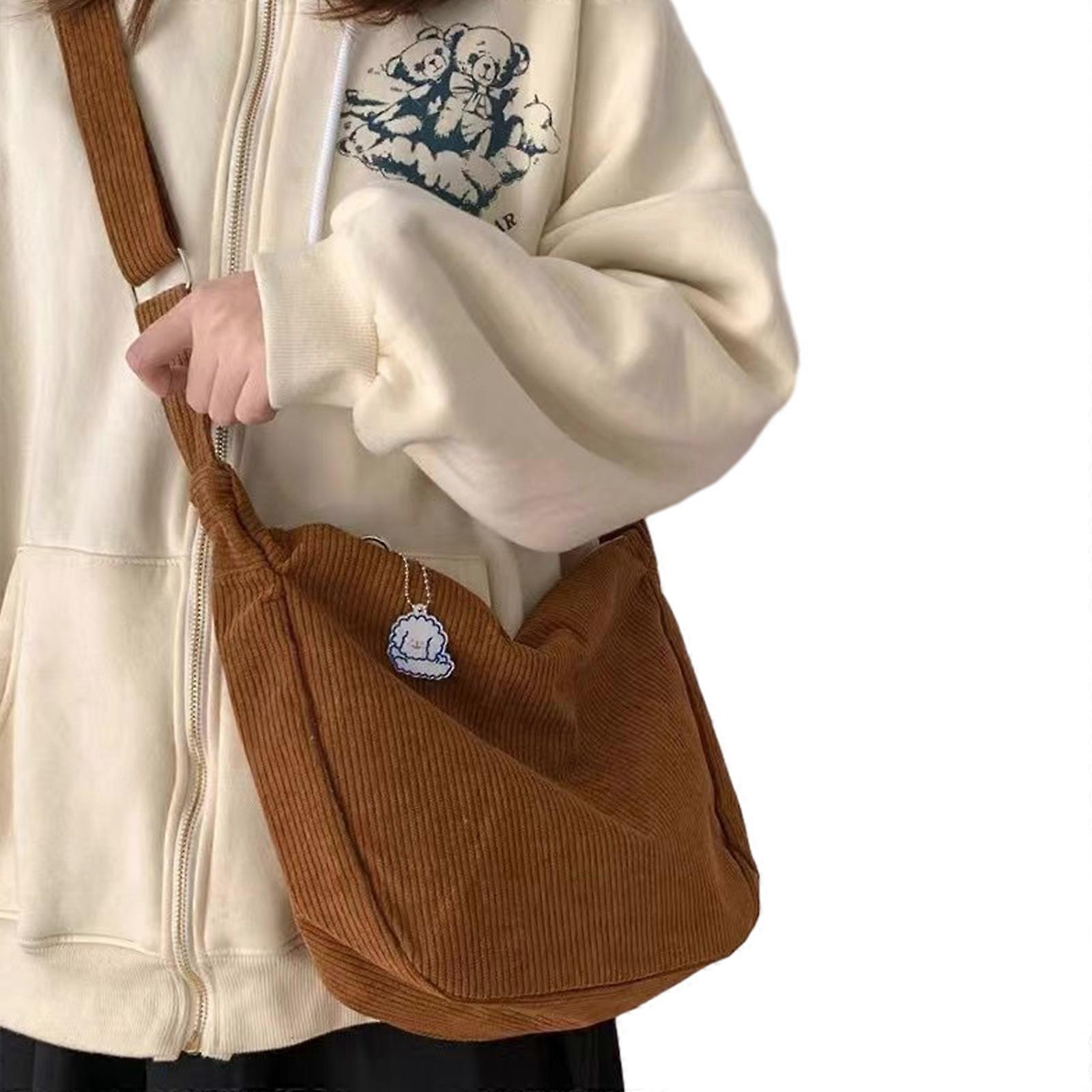 Features: Elevates your styles with our corduroy shoulder bag, featuring a versatile and trendy designs. Made from corduroy fabric, this bag showcases a simple yet fashionable look that complements any outfit. Perfect for fashion conscious individuals who appreciate the Japanese literary aesthetic and prioritize comfort in their daily lives. From everyday activities to shopping, traveling, or going on a date, this bag is suitable for various occasions. Embraces your unique personality with our corduroy shoulder bag, offering both convenience and style without compromising on quality. Specifications: Component: Corduroy Size: Approx. 26.5x22.5cm/10.43x8.86in Color: Beige/Black/Khaki Package Includes: 1x Crossbody Bag note: The pendant is shipped randomly. Please allow 1-3cm errors due to manual measurement. Due to difference between different monitors, the picture may not reflect the actual color of the item.