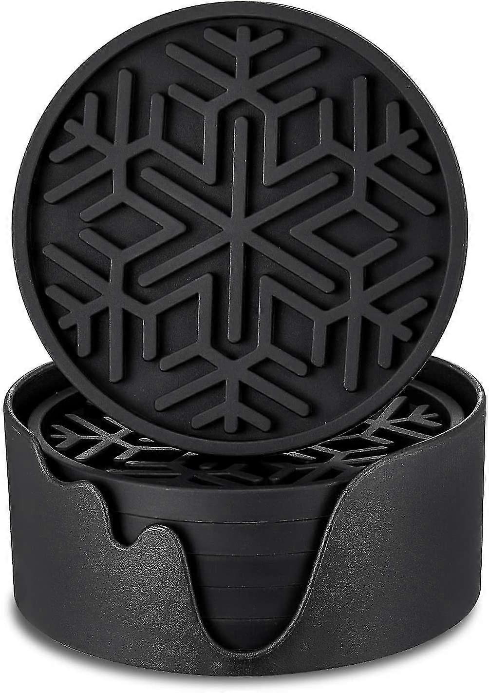 2024 Silicone Coasters [6 Pack] Snow Drink Coasters With Holder - Cup Mat - Non-slip, Non-stick