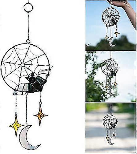 2024Halloween Hanging Ornament Bat, Moon and Stars Hanging Outdoor Pendant Acrylic Wall Art Decoration