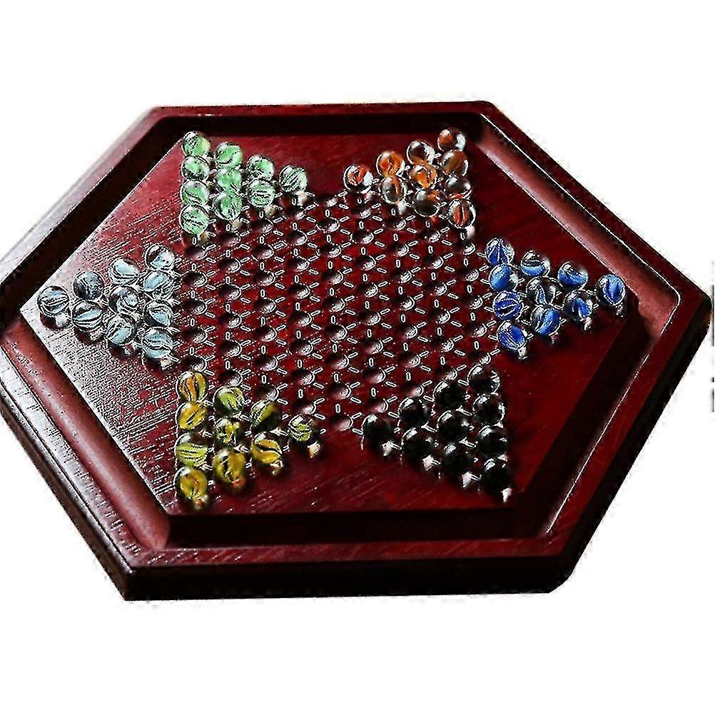 2024Portable Chinese Checkers Board Game with Marbles Wooden Board Game Hexagon Chinese Checkers Family Game Set Slot Storage