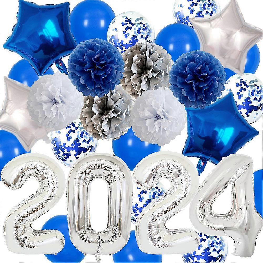 Good-looking Graduation Party Decorations 2024, Silver And Blue Graduation Decorations With 2024 Party Balloons Paper Pompoms Hanging Swirls