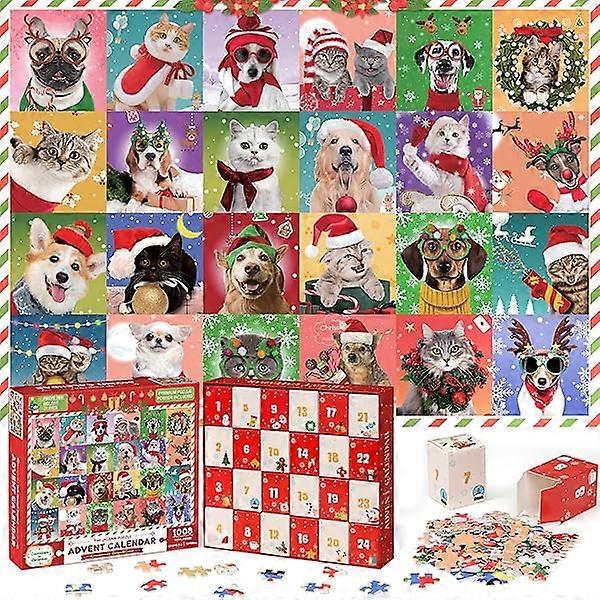 good Advent Calendar 2024 Christmas Jigsaw Puzzles, Christmas Dogs & Cats Christmas Holiday Puzzle for Kids Adults 24 Boxs 1008 Pieces Puzzles for Boy