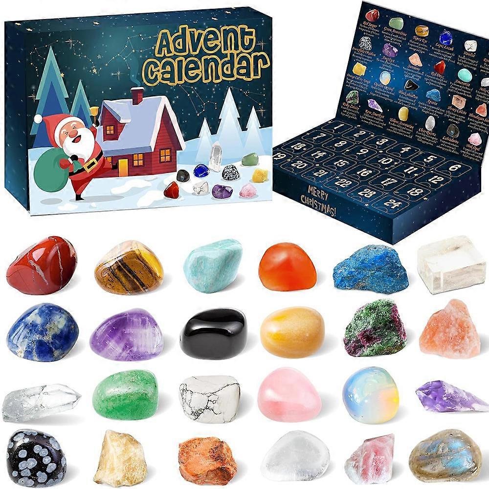 2024 Christmas Advent Calendar 24 Days Countdown Natural Stone Crystal Gemstone Mineral Kids Surprise Xmas Gifts